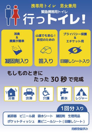この度、「緊急携帯用トイレ「行っトイレ!」」はパッケージデザインをリニューアルいたしました。