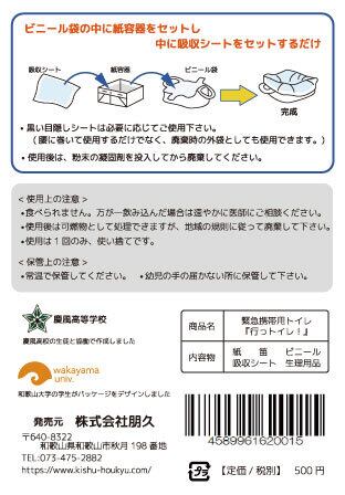 和歌山市にある慶風高校の生徒たちが高校生の視点で考えた緊急用トイレキットです。